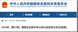 國家發(fā)改委關(guān)于印發(fā)2020年新認(rèn)定和全部國家級(jí)企業(yè)技術(shù)中心名單(第27批)的通知