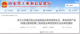 關(guān)于公布第五批山東省制造業(yè)單項(xiàng)冠軍企業(yè)